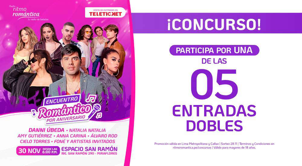 Cinco (5) ganadores se llevarán, cada uno, una entrada doble para el evento “Encuentro Romántico 2025” a realizarse el 30 de noviembre del 2025 a las 19:00 horas en el Espacio San Ramón del distrito de Miraflores, provincia y departamento de Lima (en adelante, el “Evento”).