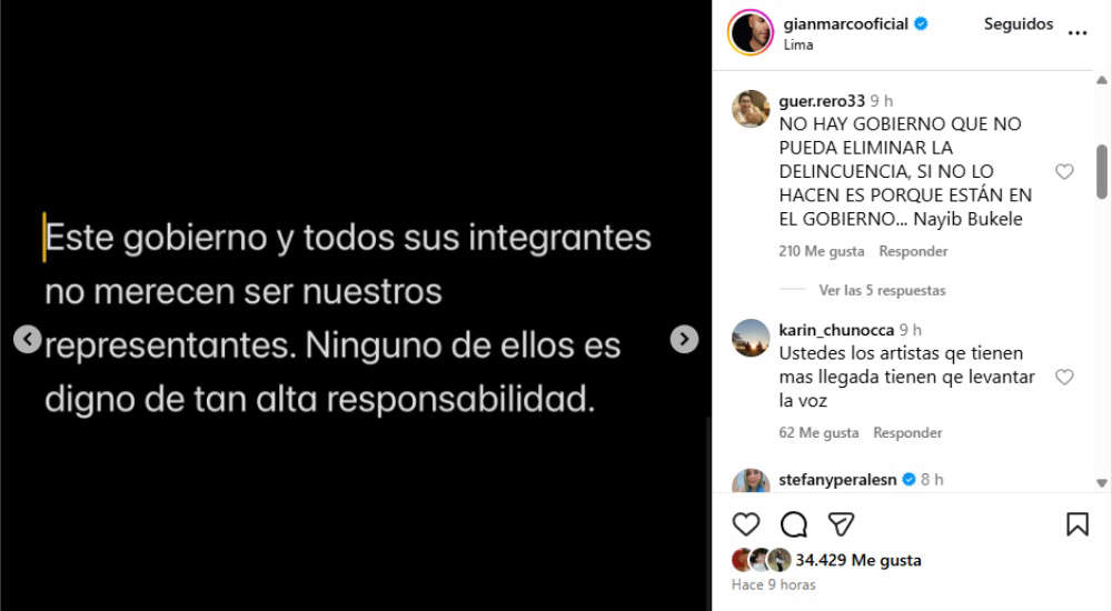 En la parte final de su comunicado, Gian Marco sintetizó su frustración y la de muchos peruanos: “Creer se ha convertido en un verbo falaz, en una fantasía de cuento. No sé qué más hacer, no sé qué más decir... tengo rabia, como todos, mucha rabia”.