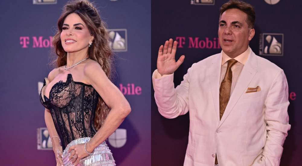 Por su parte, Cristian Castro vistió un traje de color blanco o hueso. Debajo del saco, lleva una camisa de vestir de color melocotón claro y una corbata de seda en tonos dorados o bronce con un patrón sutil. En el bolsillo del saco, lleva un pañuelo que combina con los colores de su corbata.
