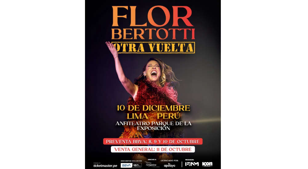Con su carisma, humor y energía contagiosa, Flor Bertotti promete un reencuentro mágico con el público peruano. La cita será una verdadera celebración de la música, la memoria y el cariño que el Perú siempre le ha brindado a la artista argentina que conquistó corazones con su sonrisa y canciones.